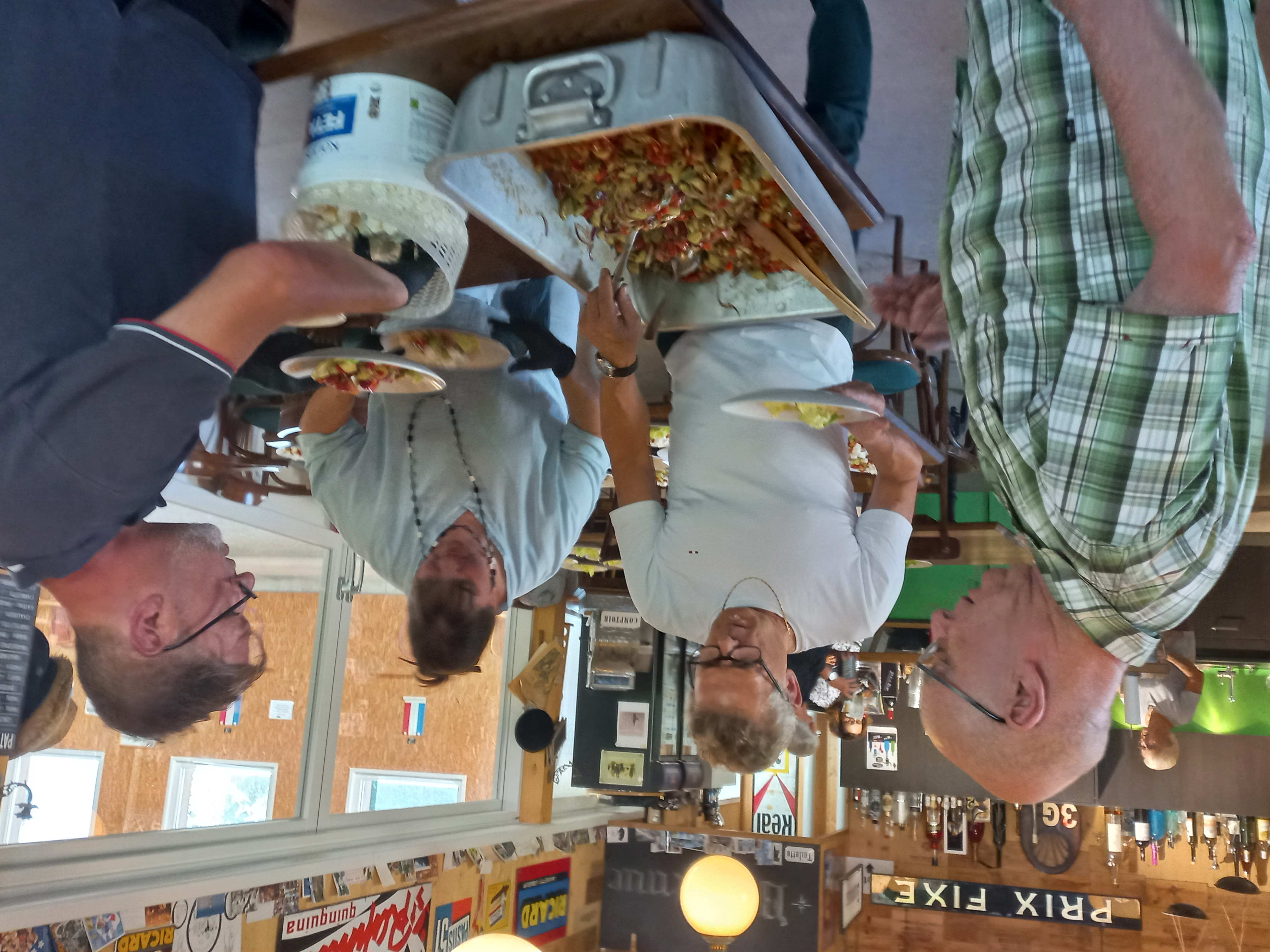 Das sah auch Petrus so, denn ich mag mich nicht erinnern, dass an diesem Anlass mal nicht schönstes Wetter geherrscht hätte. Nach dem Apéro eine Runde spielen oder auch nicht, und sich dann einfach an die gedeckten Tische setzen und dem Highlight des Abends, dem „DINER-GOURMET DE BOULE“ widmen. Zubereitet nicht etwa von fremden „Siebzehn-Punkte-Köchen“, sondern von aktiven Vereinsmitgliedern. Es ist auch diesmal wieder exzellent und superbe gelungen.